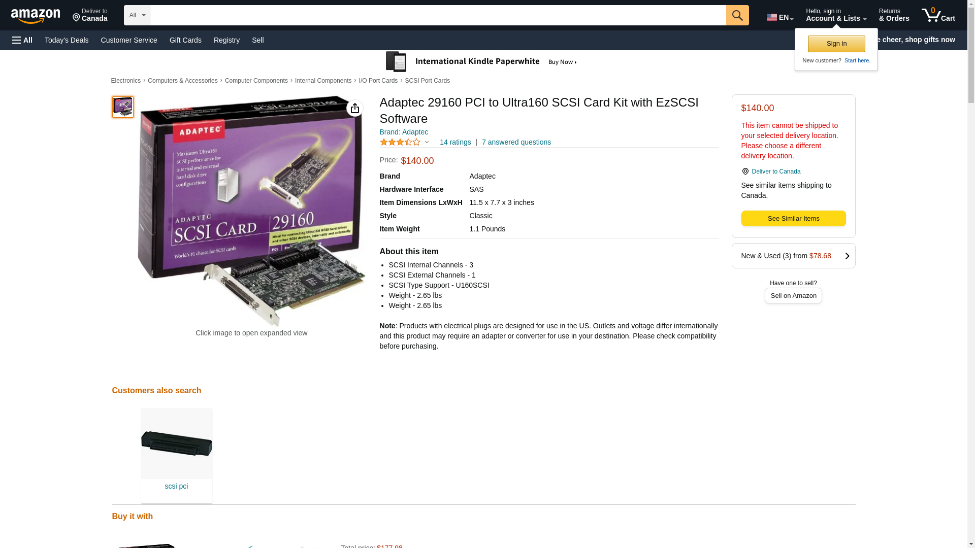 Adaptec SCSI Card 29160 This 64-bit PCI-to-SCSI adapter performs at up to 160 MB per second and allows for the connection of fifteen SCSI devices. Provides an internal 68-pin LVD SCSI connector, an internal 68-pin Ultra Wide SCSI connector, an internal 50-pin Ultra SCSI connector, and an external 68-pin LVD SCSI connector