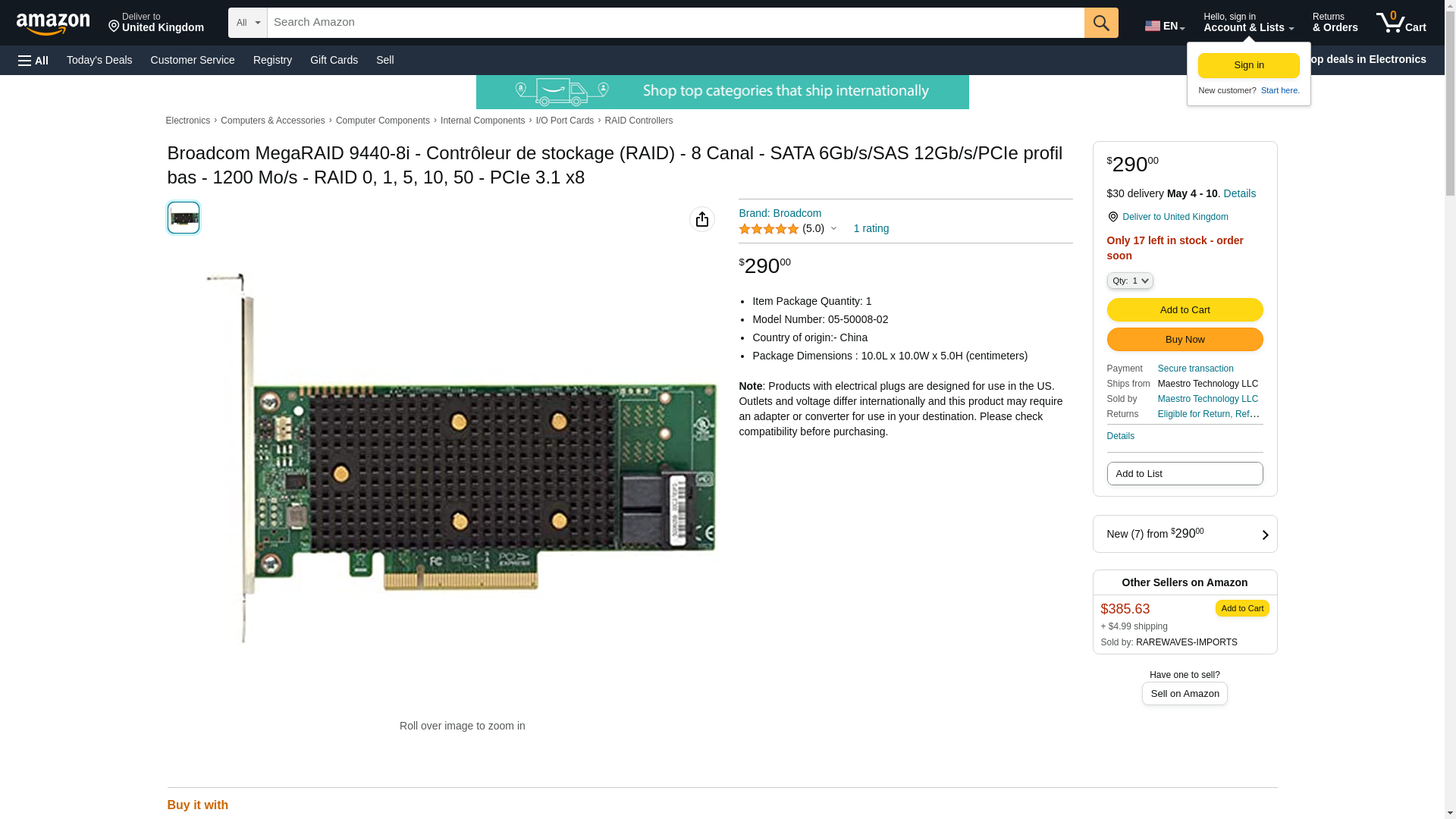 BROADCOM MegaRAID 9440-8i - Contrôleur de stockage (RAID) - 8 Canal - SATA 6Gb/s/SAS 12Gb/s/PCIe profil bas - 1200 Mo/s - RAID 0, 1, 5, 10, 50 - PCIe 3.1 x8