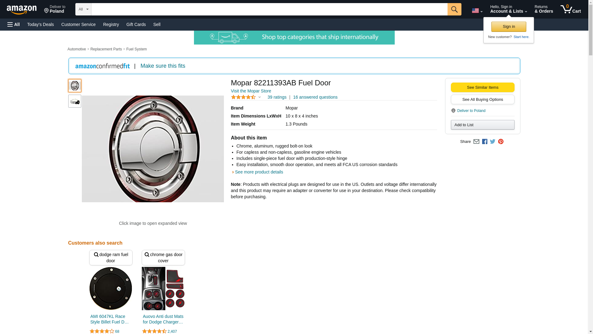 Mopar 82211393AB Fuel Filler Door Chrome, Aluminum, With Logo, For 2009 2024 Dodge/Ram