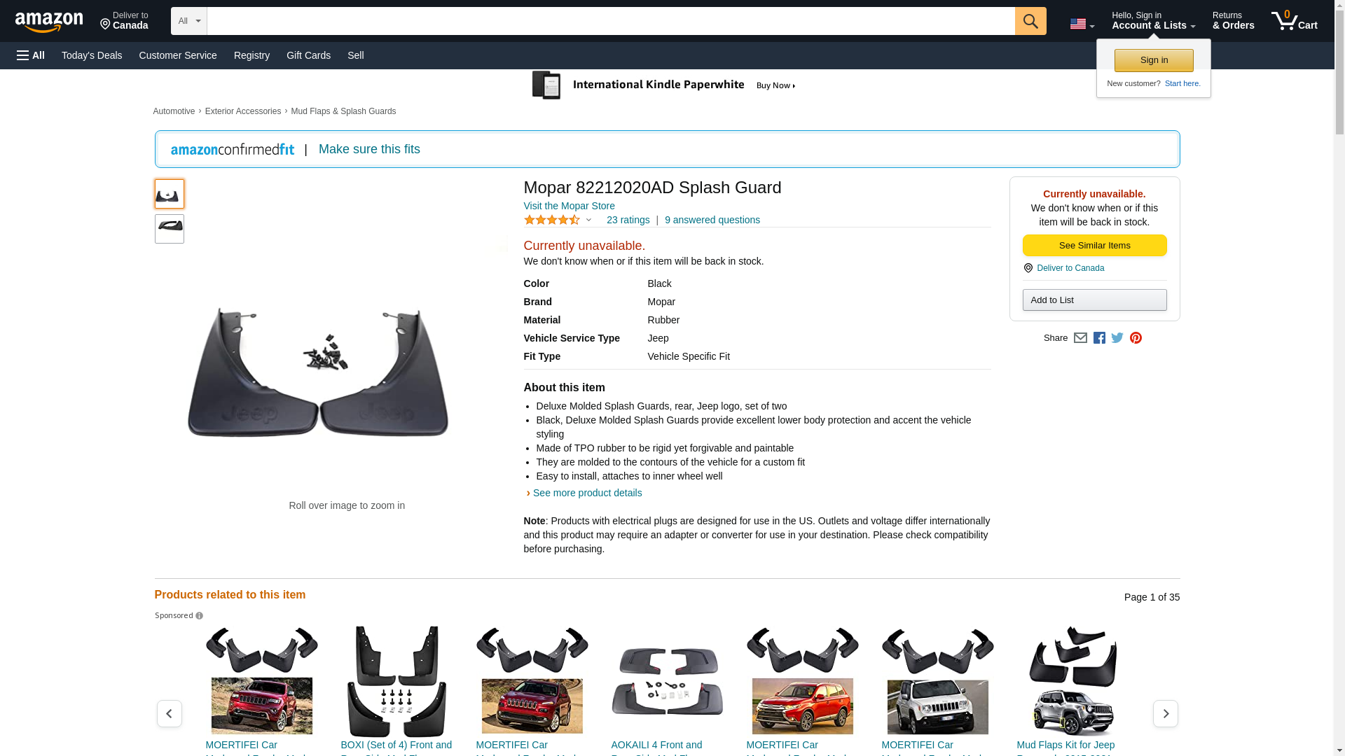 Mopar 82212020AD Splash Guard , Black