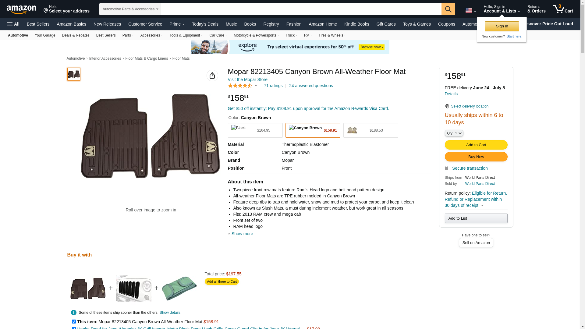 - All-weather Floor Mats are TPE rubber molded in Canyon Brown