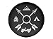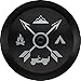 Spare Tire Cover for 32" tires. Cover is made of Black Vinyl and features a camping-themed image. It fits 245/75R17 and 255/70R18 tires and is compatible with rear view camera. Fits Jeep Wrangler