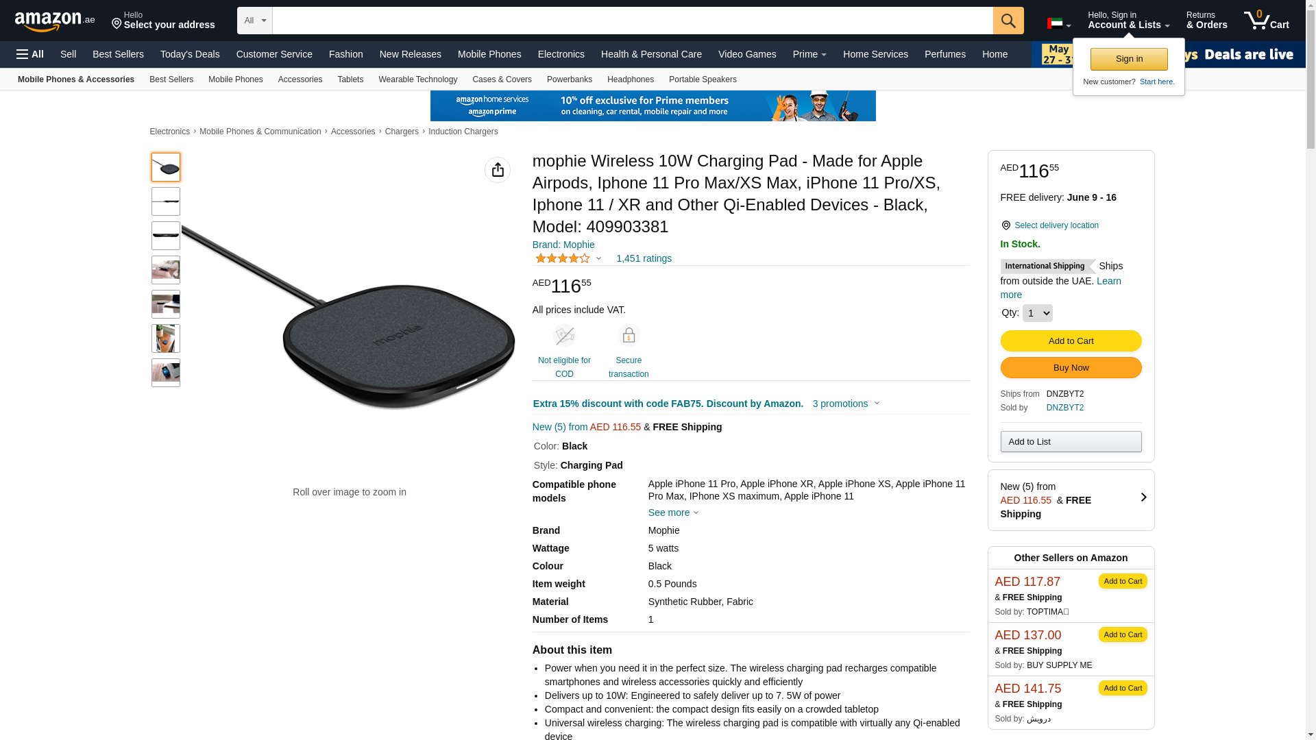 mophie Wireless 10W Charging Pad - Made for Apple Airpods, Iphone 11 Pro Max / XS Max, iPhone 11 Pro / XS, Iphone 11 / XR and Other Qi-Enabled Devices - Black, Model: 409903381