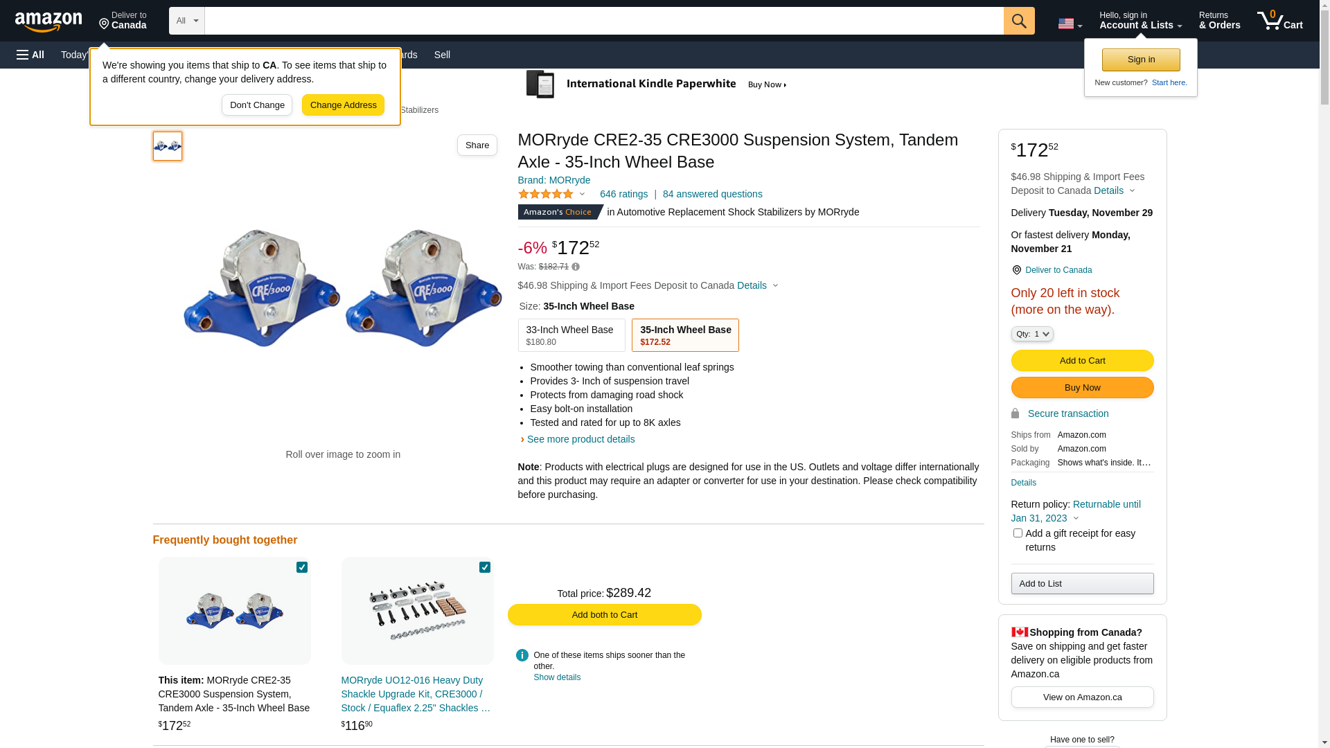 MORryde CRE2-35 CRE3000 Suspension System, Tandem Axle - 35-Inch Wheel Base