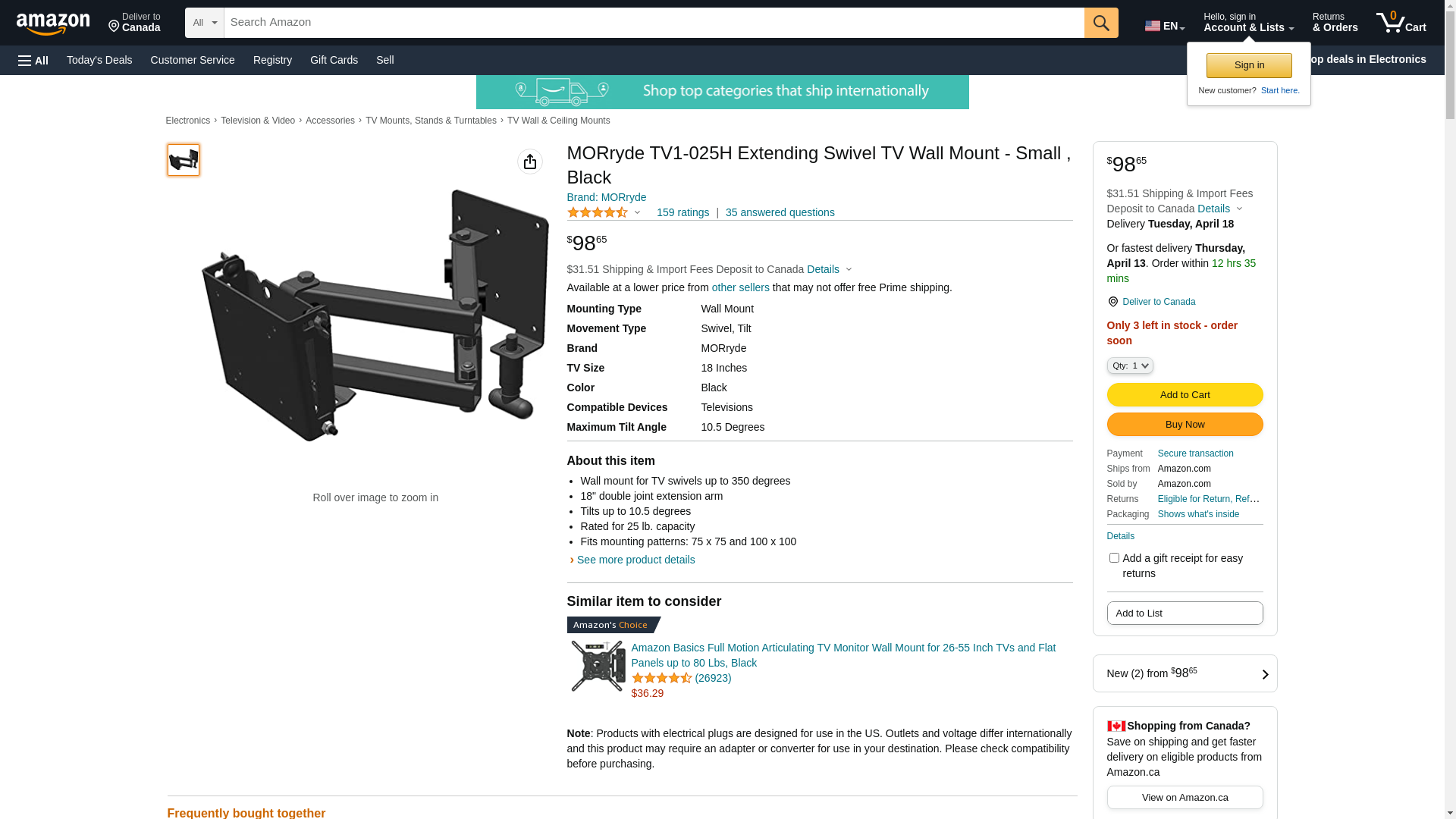 MORryde TV1-025H Extending Swivel TV Wall Mount - Small , Black