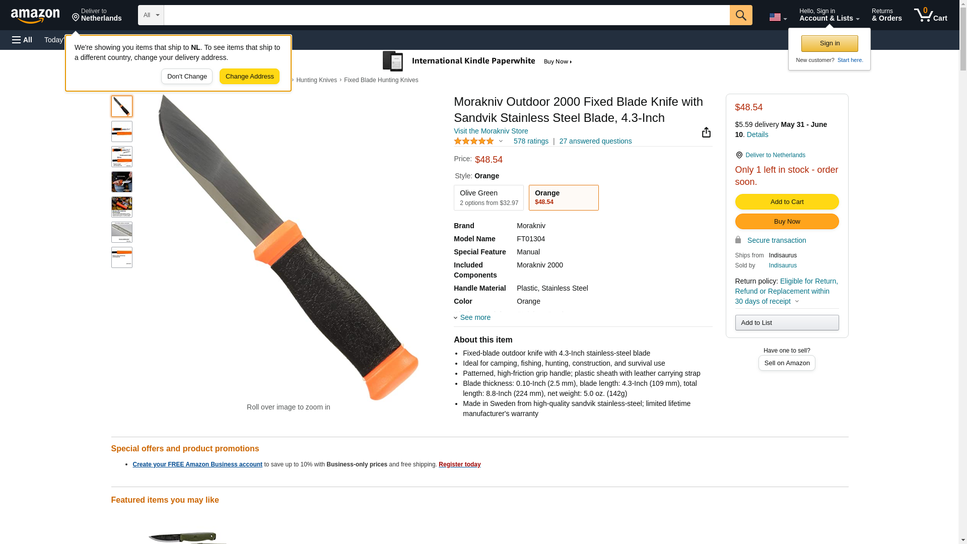 Morakniv 2000 Fixed Blade Orange Fixed Blade Knife M-12057 | $1.96 Off