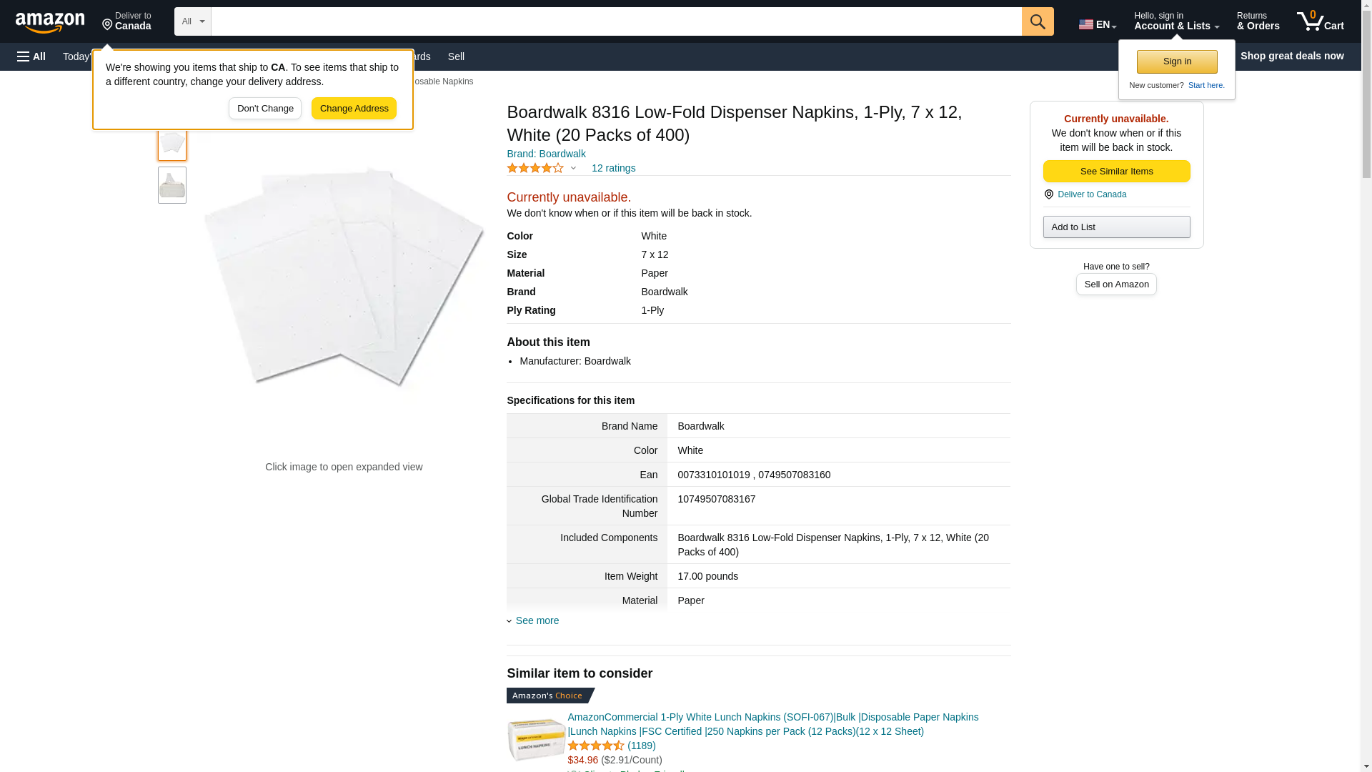 Boardwalk 8316 Low-Fold Dispenser Napkins, 1-Ply, 7 x 12, White (20 Packs of 400)