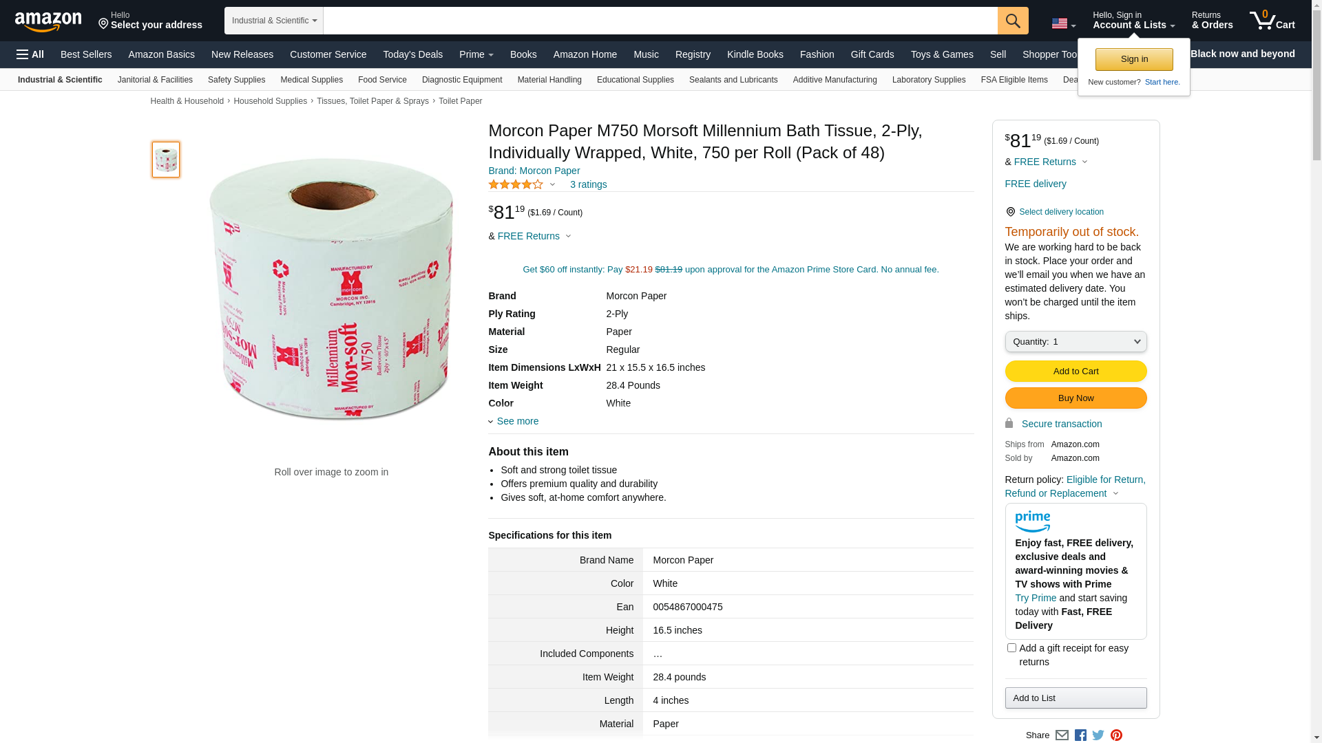 Morcon Paper M750 Morsoft Millennium Bath Tissue, 2-Ply, Individually Wrapped, White, 750 per Roll (Pack of 48)