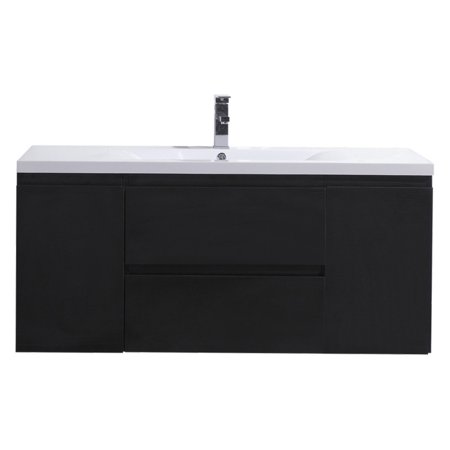 <ul><li>Dimensions: 47W x 19.75D x 22.5H in.</li><li>Your choice of finishes</li><li>Vanity made MDF wood and veneer</li><li>1 sink made of reinforced acrylic composite</li><li>Comes with 1 sink, 2 doors, and 2 drawers</li><li>Has single hole drilled for faucet (not included)</li><li>Wall mount</li></ul>