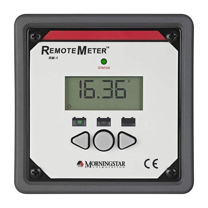 <b>Morningstar Remote Meter RM-1.</b> <p> The remote meter is a four-digit display with custom icons that is compatible with several Morningstar controllers and inverters. <p> <b>Compatible With:</b> <p> <ul> <li>SunSaver Duo controller <li>SunSaver MPPT controller <li>SureSine inverter</li> <p> </ul> <b>Includes</b> <p> <ul> <li>Mounting Frame <li>(4) #8 x 1-3/4" x screws <li>Meter Maps <li>10m (33 ft) Meter Cable</li> </ul>