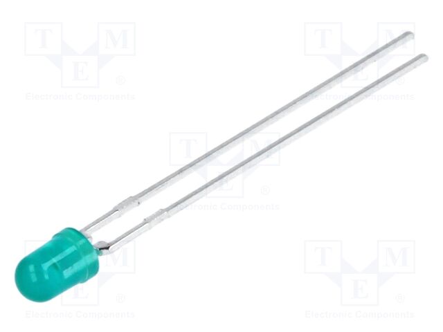 LED, 3MM, GREEN, 1MCD, 569NM; LED Color:Green; LED Mounting:Through Hole; Bulb Size:T-1 (3mm); Forward Current If:10mA; Forward Voltage:2.1V; Wavelength Typ:569nm; Luminous Intensity:1mcd; Viewing Angle:60°; Lens Shape:Round; MSL:- RoHS Compliant: Yes
