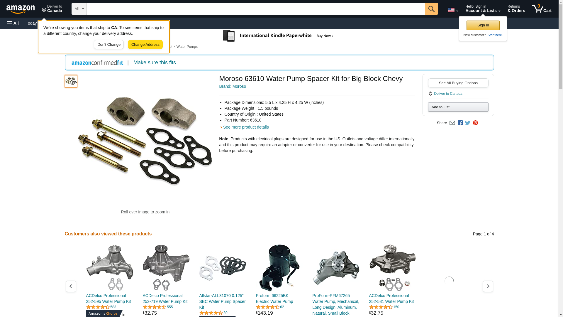 Moroso 63610 Water Pump Spacer Kit for Big Block Chevy