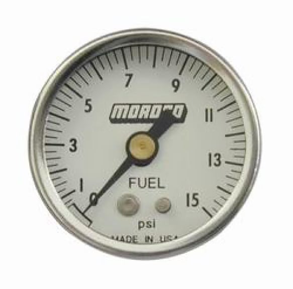 - Vibration controlled dial, not dampened by liquid Heavy-duty American made gauge with stainless steel case and bezel will not rust, chip, peel or oxidize like other designs Suited for use with alcohol Accurate to within 1% marked in 1/4-pound increments Compact 1. 5" dia. gauge can be mounted to fuel regulator or fuel block for convenient fuel pressure tuning Includes 1/8" NPT Male Fitting