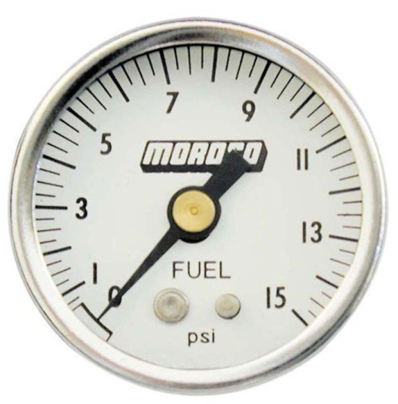 - Vibration controlled dial, not dampened by liquid Heavy-duty American made gauge with stainless steel case and bezel will not rust, chip, peel or oxidize like other designs Suited for use with alcohol Accurate to within 1% marked in 1/4-pound increments Compact 1. 5" dia. gauge can be mounted to fuel regulator or fuel block for convenient fuel pressure tuning Includes 1/8" NPT Male Fitting