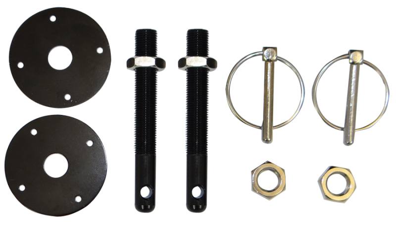 - Set consists of two ½ Inch diameter pins with all necessary mounting hardware The included pins and scuff plates have a black finish, the clips have a chrome plated finish Pins are manufactured from high strength aluminum alloy