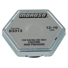 | Feature | 12-16 lbs Racing Radiator Cap; Standard Size Radiator Filler Necks; 12-16 lbs.; Stainless Steel Spring; Incl. Solid Brass Spring Retainer; Fits: Standard-size radiator filler necks, including Moroso Nos. 63420, 63465, 63466, 63467, 63485, 63486, 63650, 63651, 63656, 63730, 63740, and 63745\ufffd Available with low and high pressure raitings to accommodate the needs of all cooling systems\ufffd\ufffdSteel spring maintains accurate pressure setting over time\ufffd\ufffdSix-sided Cap for easy... |