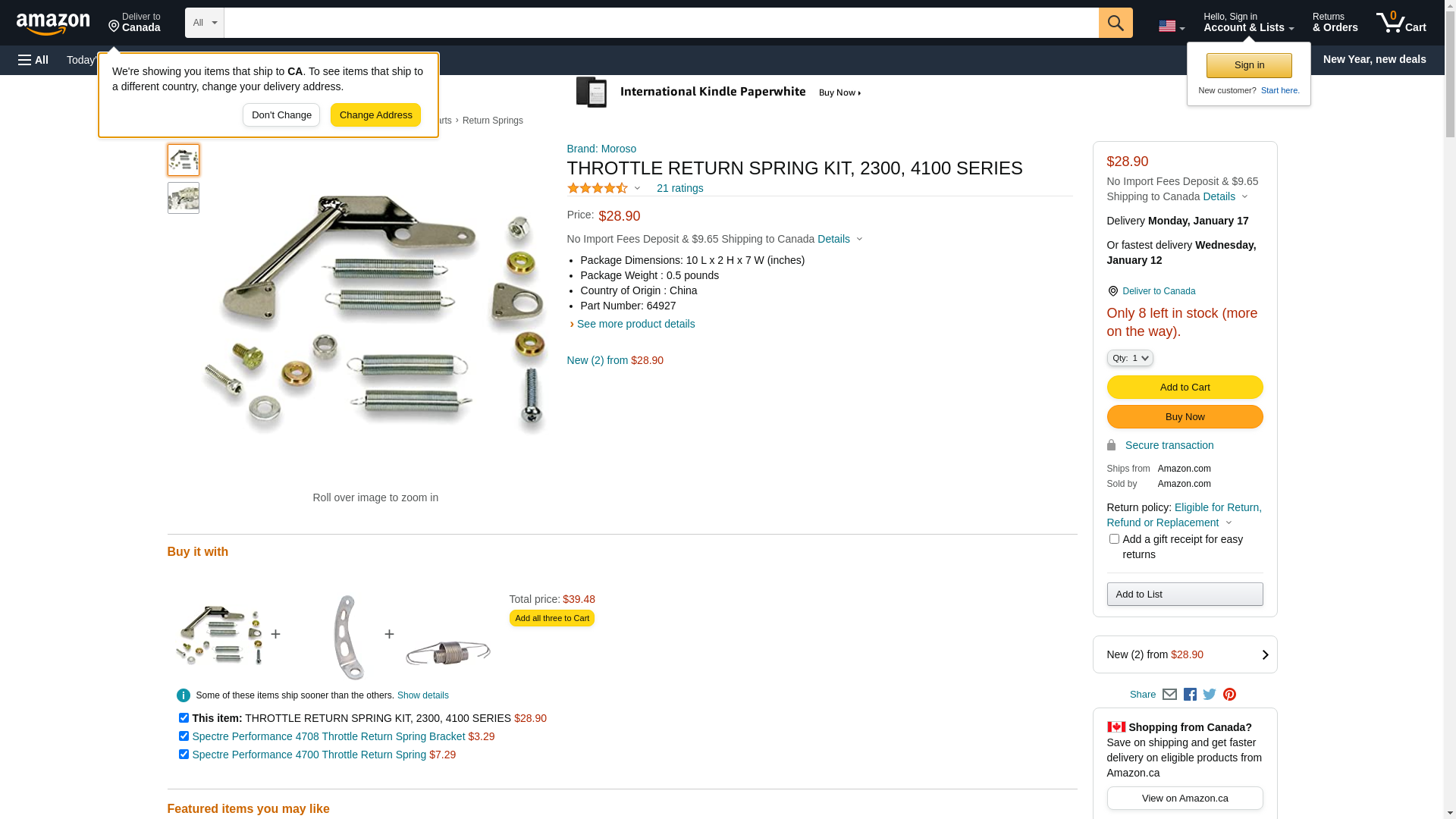 Moroso 64927 Throttle Return Spring Kit, Fits 2300 & 4100 Series Carburetors