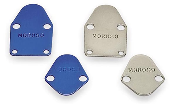 - Designed to block off the fuel pump mounting boss when a mechanical fuel pump is not used Available in two popular styles Made of Aluminum with a black anodized finish Includes Gasket