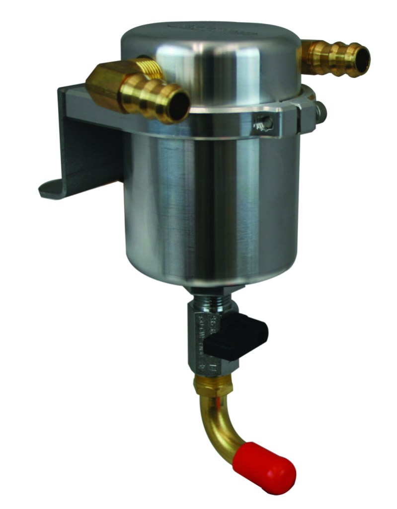 - · The MOROSO Air/Oil Separator plumbs inline of the PCV system and captures the excess crankcase vapors, residual oil and moisture