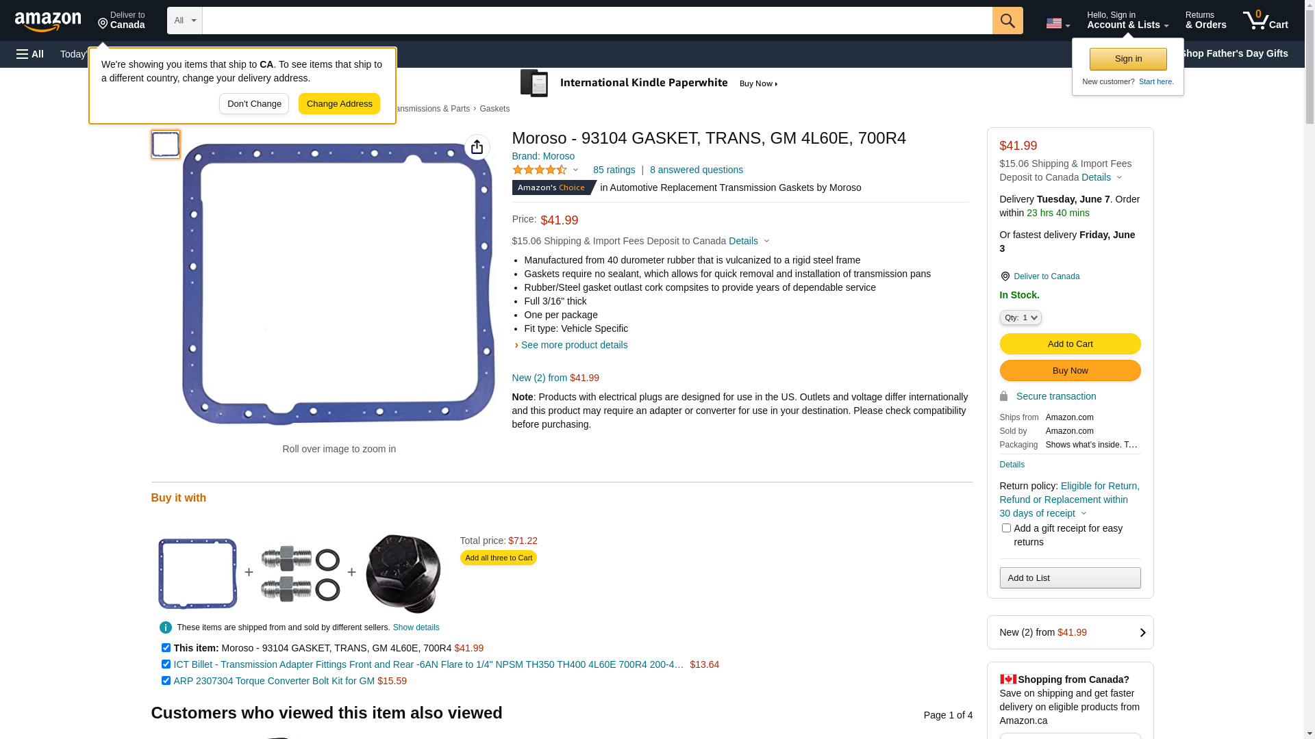 Moroso - 93104 GASKET, TRANS, GM 4L60E, 700R4