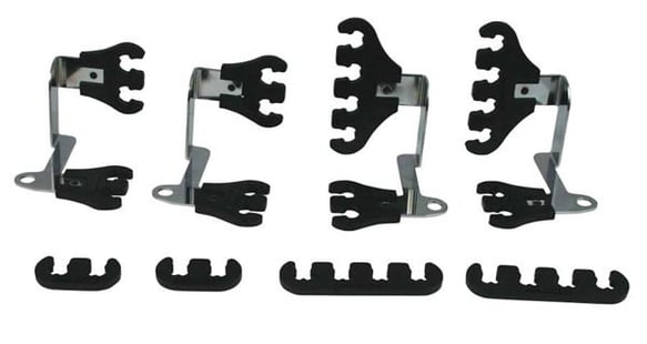 - Includes two right-side and two left-side chrome plated brackets for mounting on the valve covers, two 4-hole wire looms, six 2-hole looms, two 4-hole wire separators, and two 2-hole separators