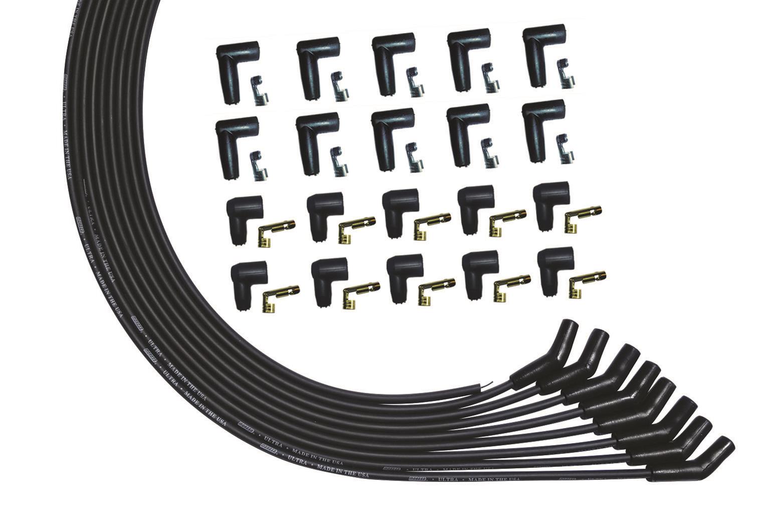 Moroso 51008 Ultra Series Black Universal V8 Spark Plug Wires, 135 Degree Plug Ends