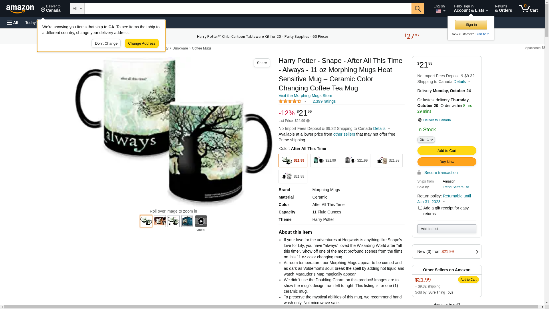 Morphing Mugs Harry Potter - Snape - After All This Time - Always - 11 oz Heat Sensitive Mug – Ceramic Color Changing Coffee Tea Mug