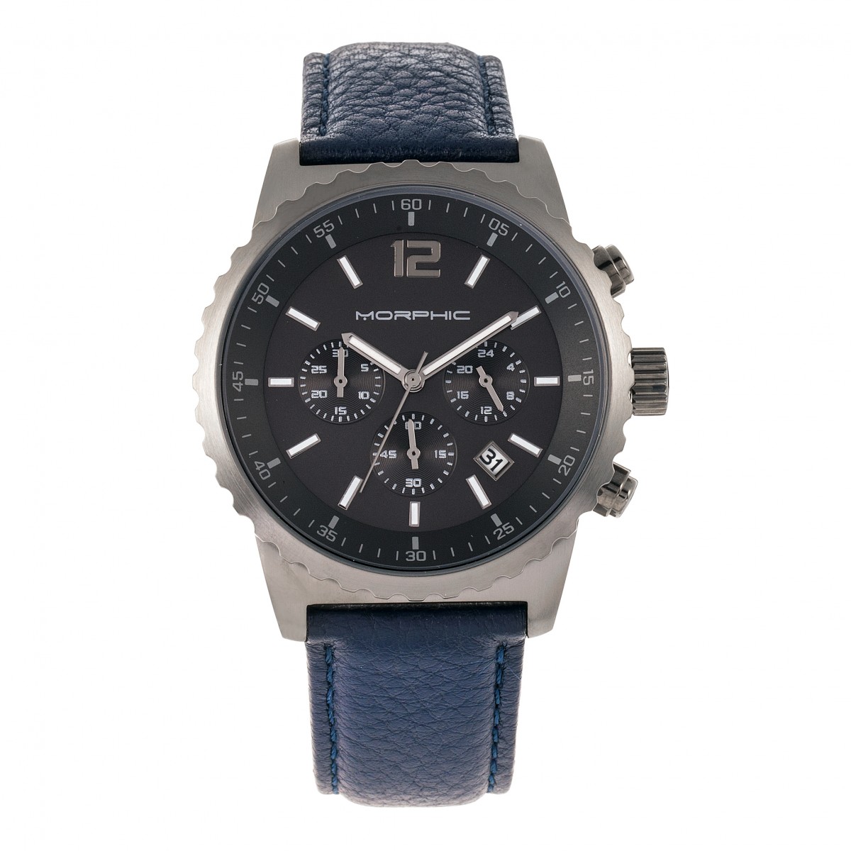 Morphic MPH6706 M67 Series Chronograph Leather Band Watch with Date - Gunmetal & Blue