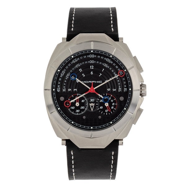 Morphic MPH7905 M79 Series Chronograph Leather Band Watch, Silver & Black