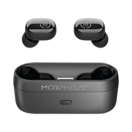 Morpheus 360 Spire True Wireless Earbuds, Wireless Microphone, Bluetooth 5.2 Wireless Ear Buds, One Touch Media Control, Waterproof Earbuds, with Recharging Earbud Case - Pure Black