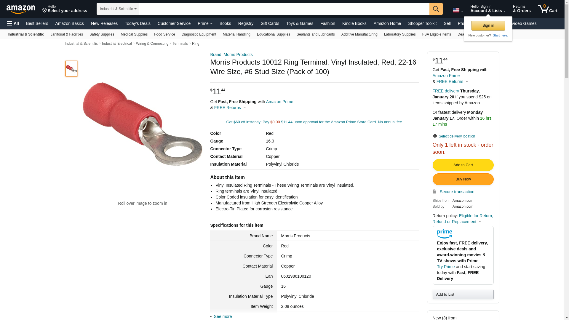 | Feature | Vinyl Insulated Ring Terminals - These Wiring Terminals are Vinyl Insulated. |