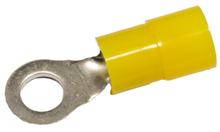 Nylon Insulated Ring Terminals - 12-10 Wire 516 in. Stud - Nylon Insulated ring Terminals for electrical Wiring.Features. Ring Terminals are Nylon Insulated.. Color Coded insulation for easy identification.. Manufactured from high strength electrolytic copper alloy.. Electro - tin plated for corrosion resistance.. Easy entry expanded insulation eliminates strand Hang Up increasing crimping rates and provides mechanical strain relief.. Wire range stamped on the surface for easy interpretation.. Terminal barrel has brazed seam.. Serrated barrel provides excellent electrical contact resistance to pull - out forces.. 221F 105C 600 Volts Max.Specification. Color - Yellow.. Wire Size - 12-10 in.. Stud Size - 516 in.. Pack of - 100.. Item Weight - 0.58 lbs.
