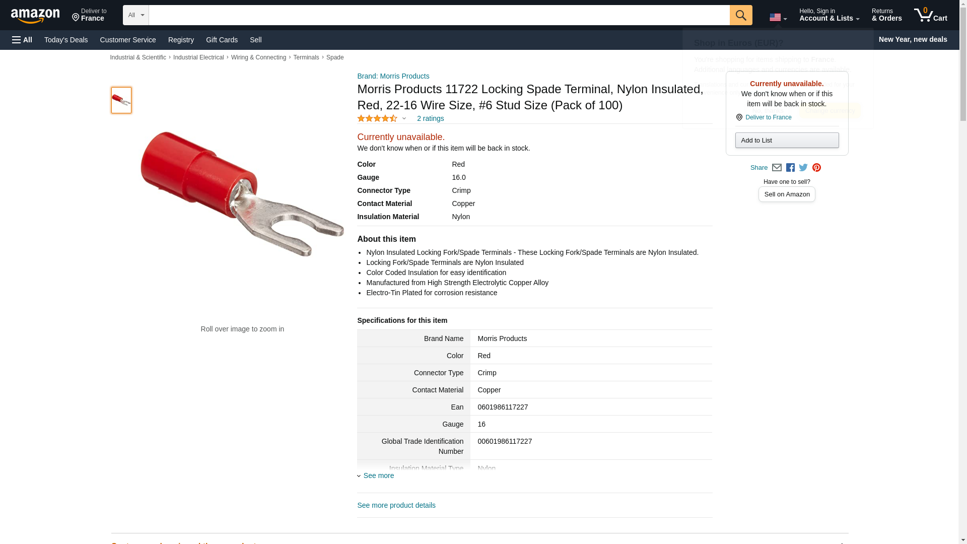 Morris 22-16 AWG #6 Red N.I. Locking F/S Terminal 11722. ✅Morris authorized distributor ✅. ☎ (800) 884-5767 Mon-Fri 8:00 AM - 5:00 PM ET or order online 24/7