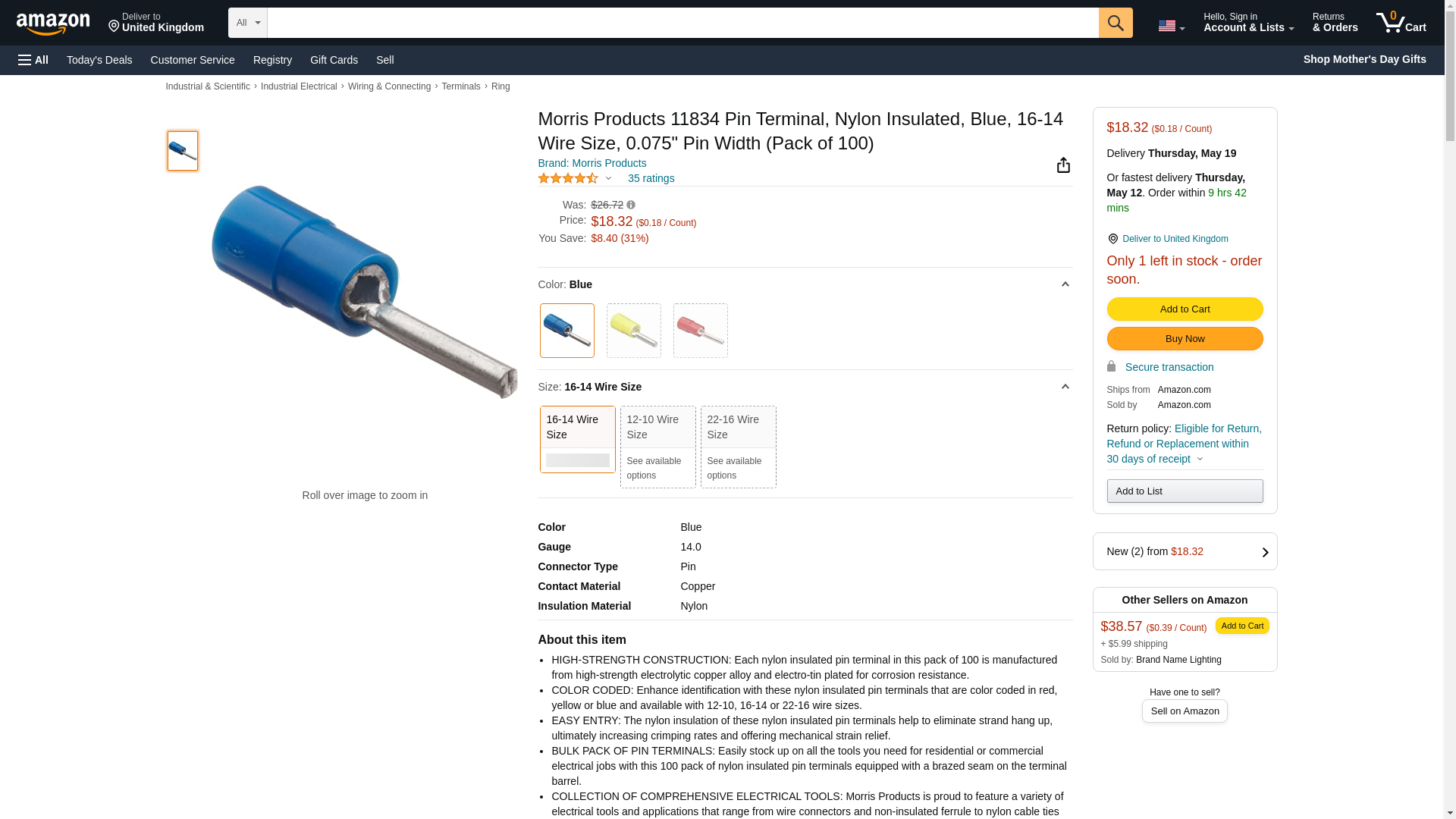 | Feature | Nylon Insulated Pin Terminals - These Pin Terminals are Nylon Insulated. |