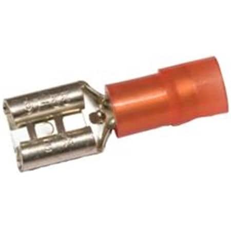 Nylon Insulated Double Crimp Female Disconnects [Set of 100] Tab: 0.02" x 0.11", Wire Size: 22"-16", Color: Red