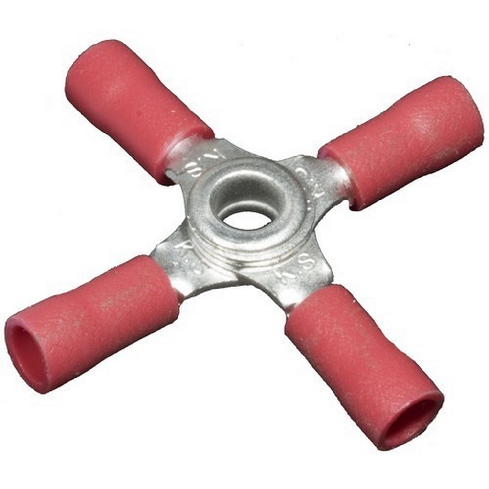 Morris Products 12178 4 Way Connector, Vinyl Insulated, Red, 22-16 Wire Size, #8 Stud Size (Pack of 100)