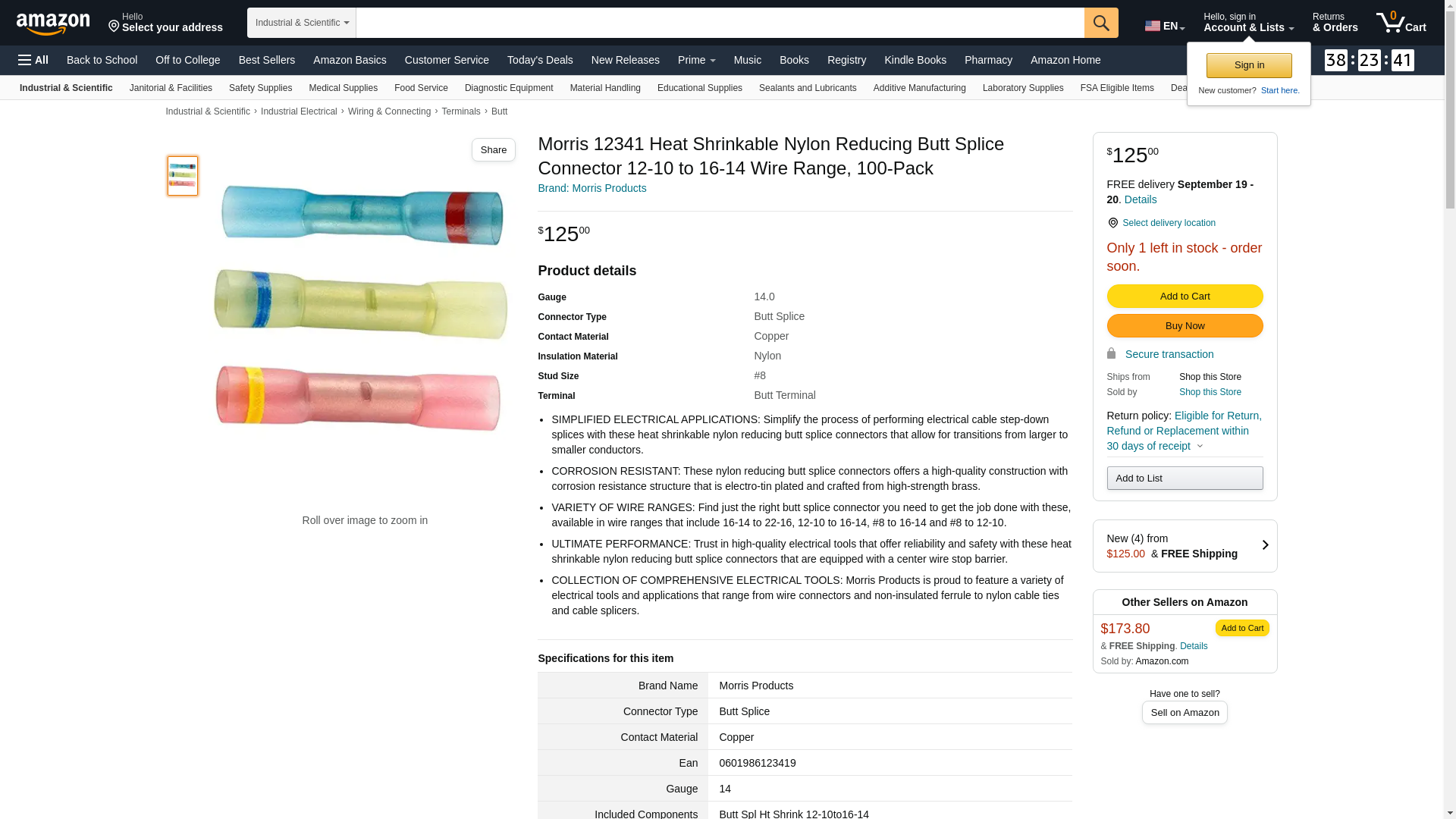 Morris 12341 Heat Shrinkable Nylon Reducing Butt Splice Connector 12-10 to 16-14 Wire Range, 100-Pack