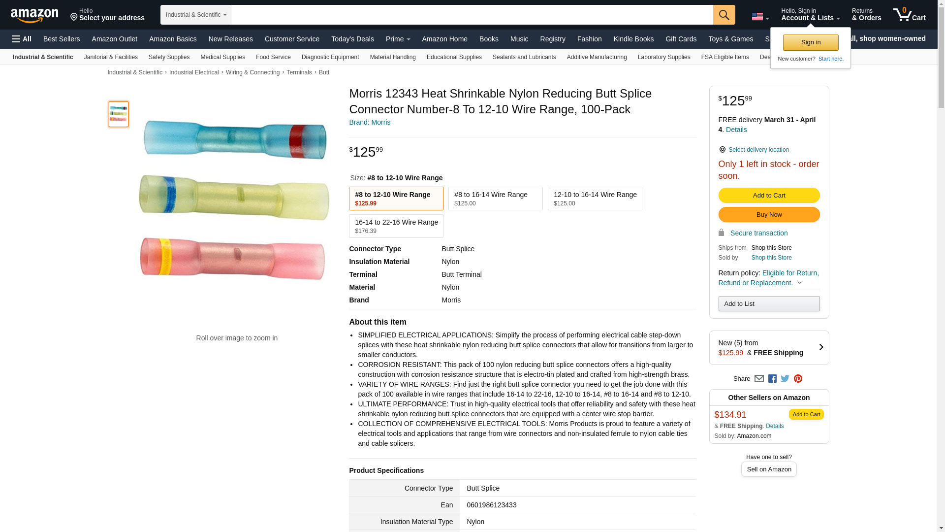 Morris 12343 Heat Shrinkable Nylon Reducing Butt Splice Connector Number-8 to 12-10 Wire Range, 100-Pack