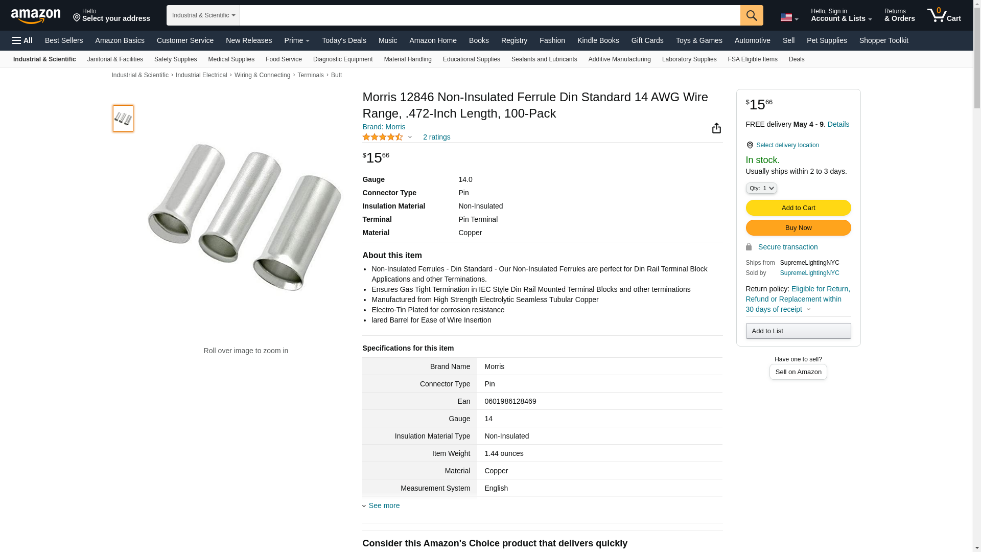 Morris #14 Small AWG 0.472" Non-Insulated Ferrule, Din Standard 12846. ✅Morris authorized distributor ✅. ☎ (800) 884-5767 Mon-Fri 8:00 AM - 5:00 PM ET or order online 24/7