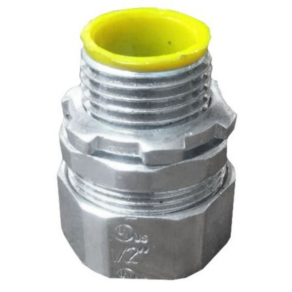 Morris Products 14370 0.5 in. Rigid Steel Compression Insulated Box Connector for Connect Thread-Less Rigid Conduit
