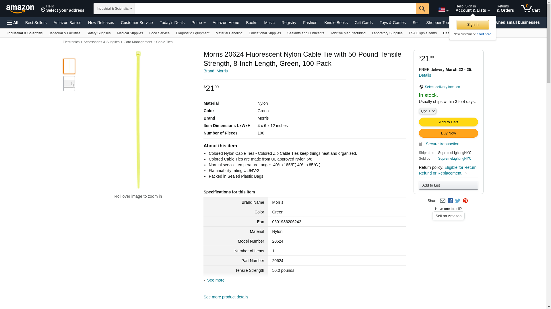 Morris 8" Fluorescent Green Nylon Cable Tie, Up to 50lbs. 20624. ✅Morris authorized distributor ✅. ☎ (800) 884-5767 Mon-Fri 8:00 AM - 5:00 PM ET or order online 24/7