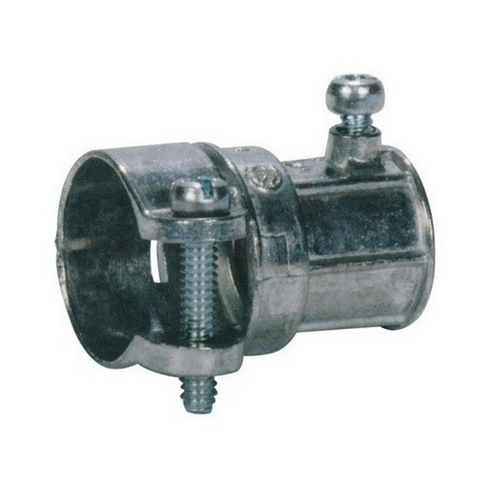 | Feature | EMT to Flex Combination Coupling - Squeeze Type - Zinc Die Cast - EMT to Flex Combination Coupling are Used to join EMT Conduit to Flexible Metal Conduit |