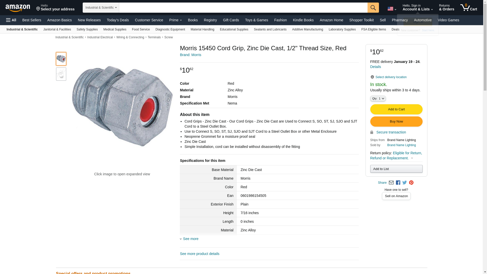 Morris 15450 Cord Grip, Zinc Die Cast, 1/2" Thread Size, Red. Cord Grips - Zinc Die Cast - Our Cord Grips - Zinc Die ...
