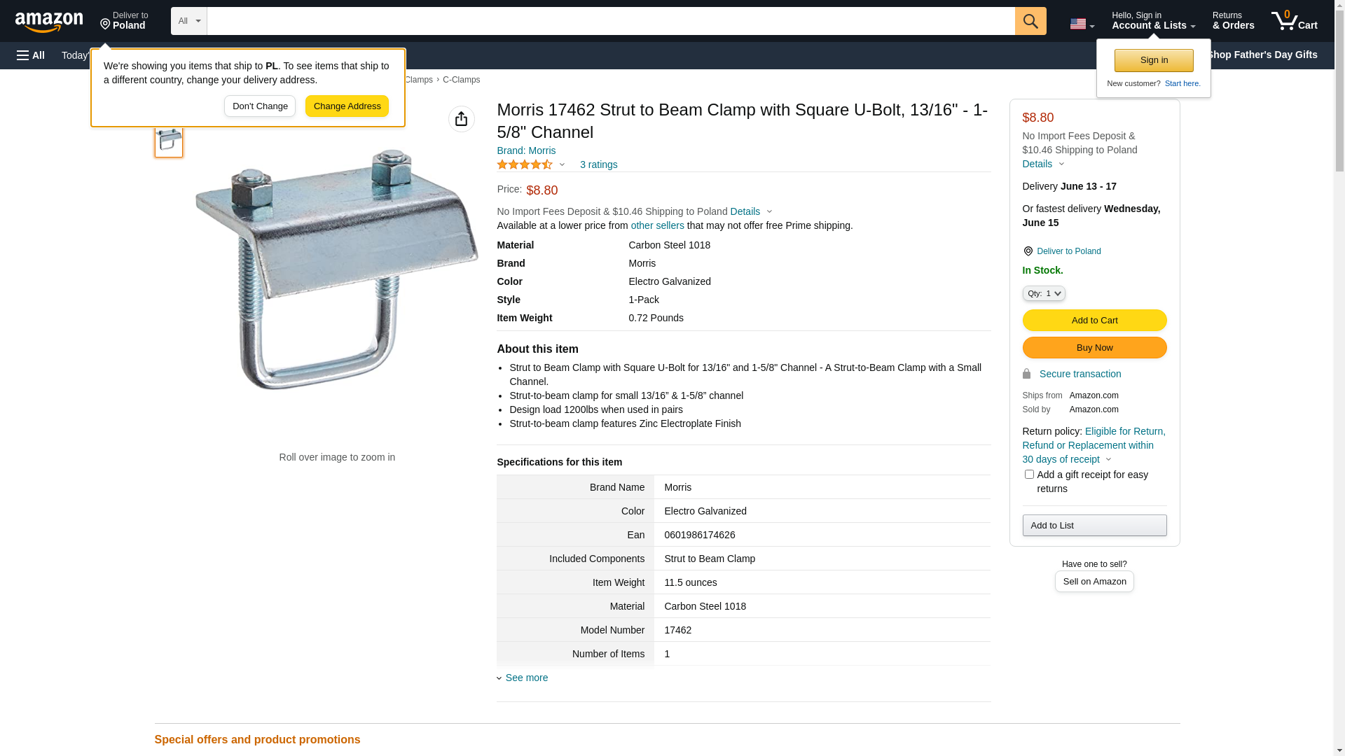 Morris Strut to Beam Clamp with Square U-Bolt 17462. ✅Morris authorized distributor ✅. ☎ (800) 884-5767 Mon-Fri 8:00 AM - 5:00 PM ET or order online 24/7