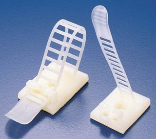 - Adhesive Cable Clamps with Retaining Strap are designed to Secure Wire Bundles where fixing holes or Cable Ties are impractical