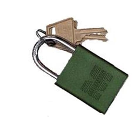 Green Keyed Different Padlock Features: Solid Anodized Aluminum Shackle padlock body measures 1-1/2" wide x 3/4" thick x 1-13/16" high Chrome plated hardened steel shackle is 1/4" dia x 1" vertical clearance x 25/32" horizontal clearance Double Ball Bearing Locking Mechanism Re-keyable 5 pin brass cylinder and anti-pick pinning Each shackle padlock comes with 2 keys Complies with Rule (1910.147) for Safety Lockout Guards Against Accidental Start-Up Injuries