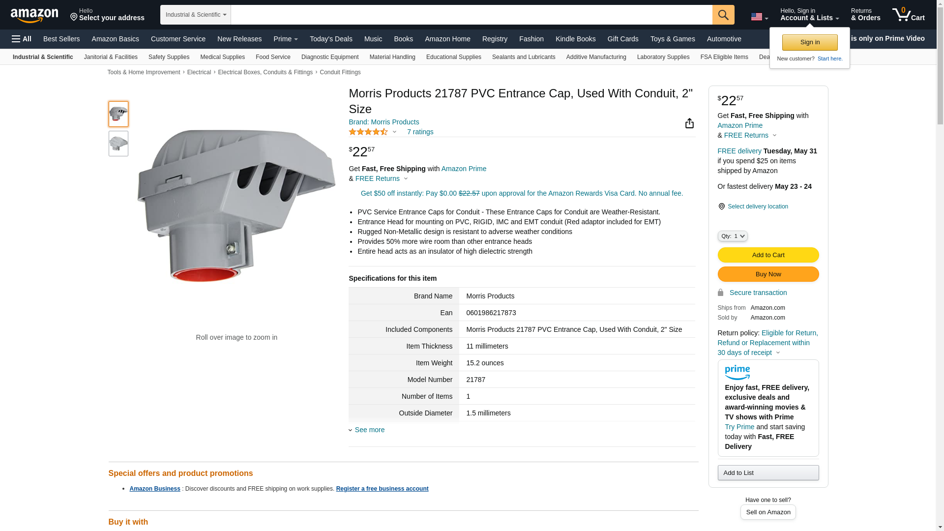 Morris Products 21787 PVC Entrance Cap, Used With Conduit, 2 Size (2)