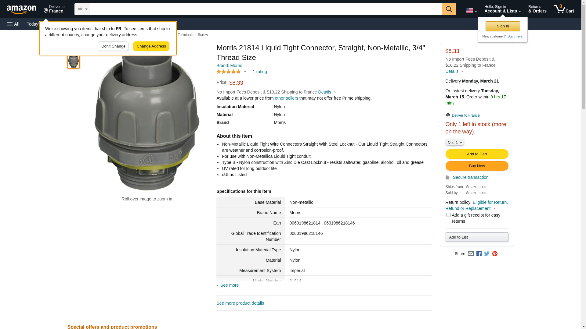 Morris 21814 Liquid Tight Connector, Straight, Non-Metallic, 3/4" Thread Size. Non-Metallic Liquid Tight Wire Connect...