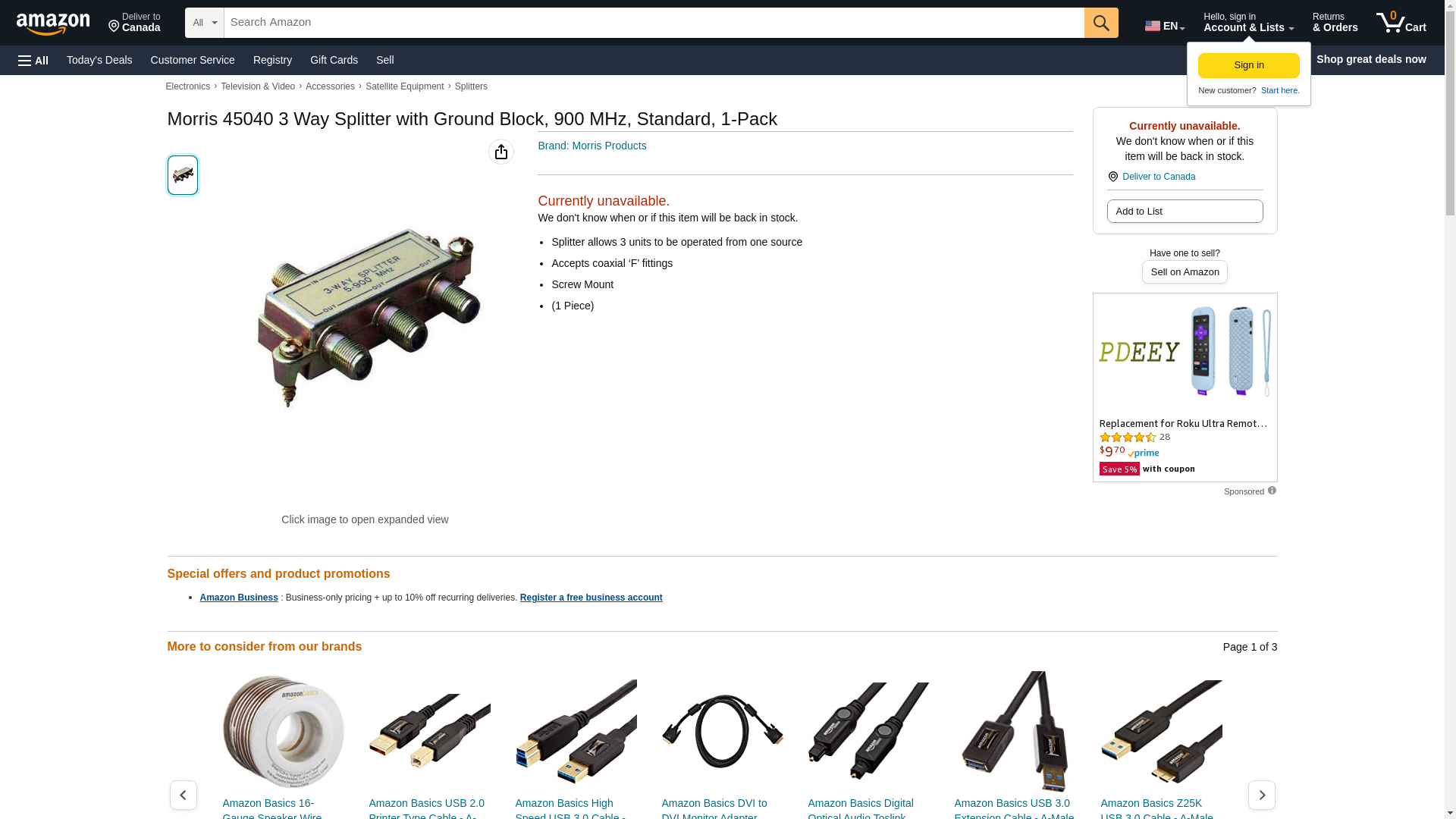 | Feature | 3 Way Splitters with Ground Block - Durable, screw mount 3 Way Splitter. |