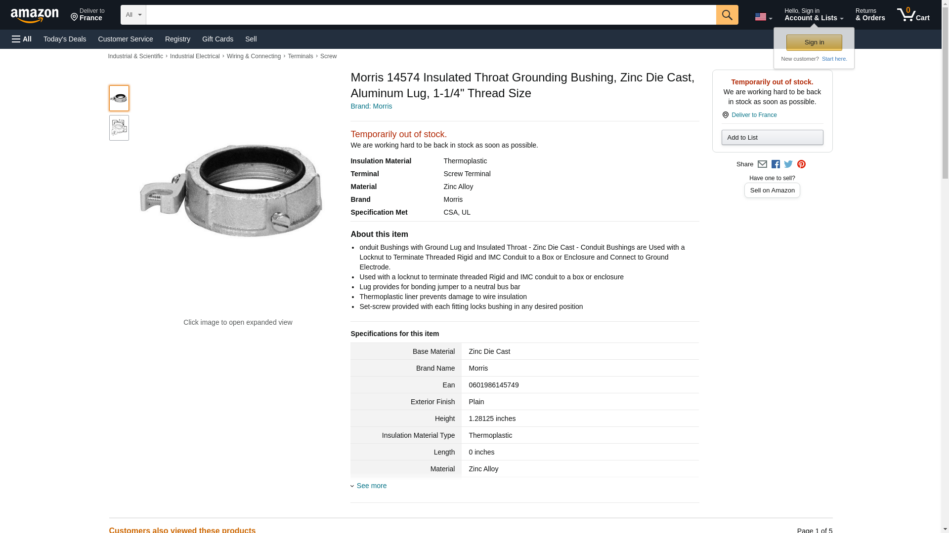 Morris 14574 Insulated Throat Grounding Bushing, Zinc Die Cast, Aluminum Lug, 1-1/4" Thread Size. onduit Bushings wit...